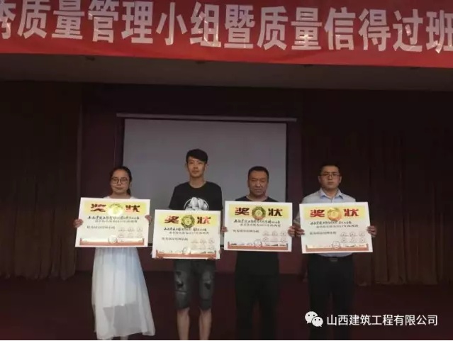 各班組及QC小組活動(dòng)選題新穎、工具應(yīng)用恰當(dāng)、針對(duì)性強(qiáng)、整個(gè)活動(dòng)規(guī)范有序,發(fā)布精彩生動(dòng)。經(jīng)過激烈角逐,我公司廣宇勞務(wù)公司田李峰班組脫穎而出,并被推薦至中國(guó)質(zhì)量協(xié)會(huì)參加全國(guó)質(zhì)量信得過班組的評(píng)選。同時(shí)東北分部、鋼結(jié)構(gòu)二分公司、工業(yè)設(shè)備安裝分公司及廣宇勞務(wù)公司的五個(gè)班組被評(píng)為“山西省質(zhì)量信得過班組”;一分公司、五分公司、華北分部、鋼結(jié)構(gòu)二分公司、大同分公司、市政工程分公司、西北分部、總承包公司及廣宇勞務(wù)公司的11個(gè)QC成果也被評(píng)為“山西省優(yōu)秀質(zhì)量管理小組”;廣宇勞務(wù)公司被評(píng)為“山西省質(zhì)量信得過班組建設(shè)優(yōu)秀企業(yè)”;山西建筑工程有限公司樊閆妮、廣宇勞務(wù)公司齊勝利被評(píng)為“山西省質(zhì)量信得過班組建設(shè)先進(jìn)個(gè)人”。